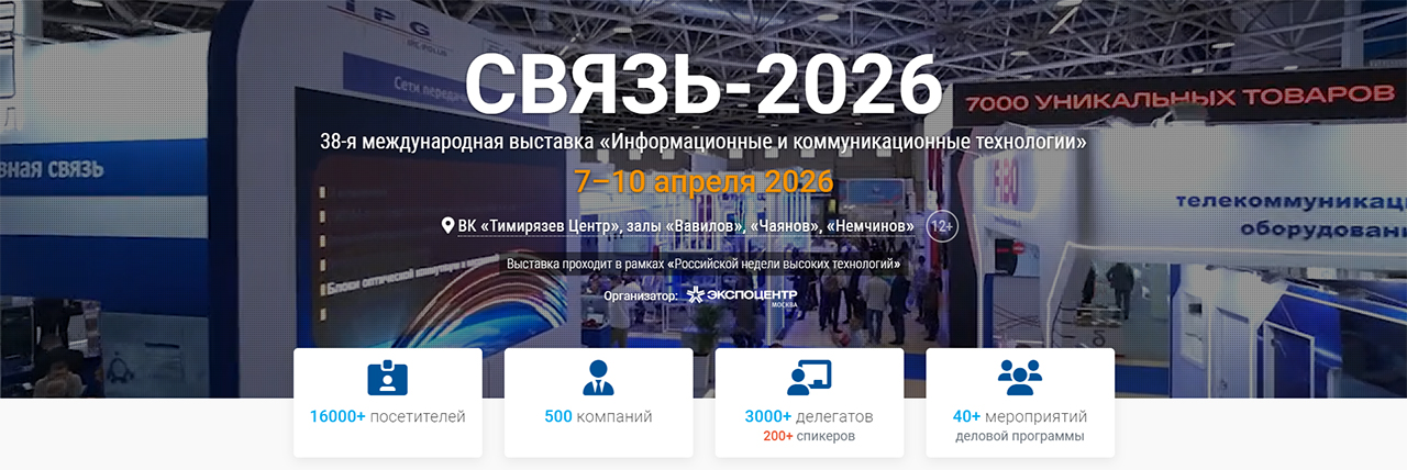 7 апреля начнет работу 38-я международная выставка информационных и коммуникационных технологий «Связь-2026». Официальные отели-партнёры мероприятия - гостиницы ЦМТ Москвы: Plaza Garden Moscow WTC, Satelinn Moscow Khovrino, апарт-отель «Международная».