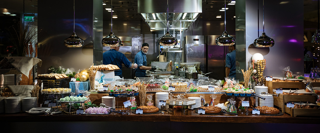 За праздничный стол, гастрономические традиции и национальные блюда разных стран мира, по которым проходило виртуальное новогоднее путешествие, отвечала команда RFR ГРИЛЬ во главе с шефом ресторана Максимом Савельевым. Повара удивили гостей изысканными вкусами, богатым выбором закусок и основных блюд современной европейской кухни. Также в новогоднем меню были представлены дальневосточные устрицы, мраморный стриплойн, праздничная домашняя выпечка из собственной пекарни RFR Гриль и авторские десерты ручной работы от шеф-кондитера ЦМТ Москвы Дениса Щербака. Открытый бар с безлимитными алкогольными и безалкогольными напитками работал для гостей всю ночь.