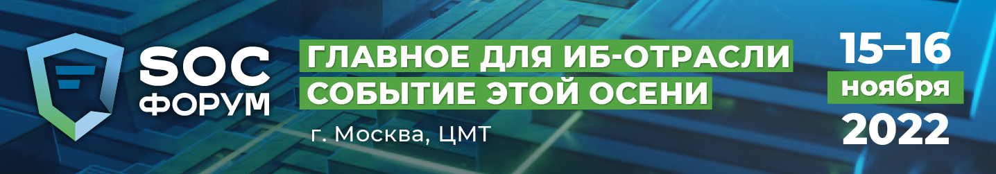 15-16 ноября 2022 года в Конгресс-центре ЦМТ Москвы вновь пройдет главное событие года в сфере информационной безопасности России — VIII ежегодный SOC-Форум «Практика противодействия компьютерным атакам и построения центров мониторинга ИБ». Организаторы мероприятия – ФСБ России и ФСТЭК России, генеральный партнер Форума – компания «Ростелеком-Солар».