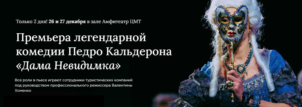 В течение нескольких месяцев отельеры, турагенты, операторы, корпоративные клиенты и другие представители тревел - отрасли, среди которых сотрудники таких компаний, как Coral Travel, S7, АО ТКП, Satguru Travel, UTS24, Смарт круиз, Lady red travel, а также заместитель директора отдела продаж и маркетинга гостиницы Центра международной торговли Plaza Garden Moscow WTC Татьяна Прудникова, готовились к этому знаменательному событию. Они осваивали актерское мастерство, хореографию и даже фехтование, участвовали в каждодневных репетициях, создании костюмов и творческих образов, чтобы под конец года выйти на сцену и представить на суд зрителей любовную комедию Педро Кальдерона «Дама Невидимка», погрузить нас в атмосферу испанских страстей 17 века. Сюжет пьесы полон любовных интриг, игр, тайн и разоблачений, и следить за ним – одно удовольствие.