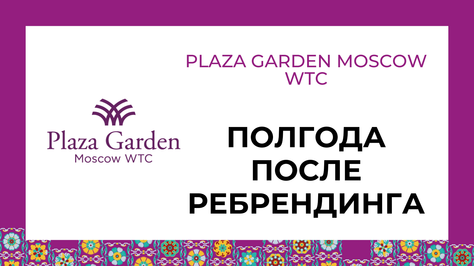 Генеральный менеджер отеля отметила, что 2022 год показал компетентность и профессионализм команды Plaza Garden Moscow WTC, а также сплочённость коллектива: «Именно в период ребрендинга нам удалось продемонстрировать очень хорошие финансовые результаты. Доход июня, на который и пришелся пик ребрендинга, превзошел финансовые показатели 2021 года».