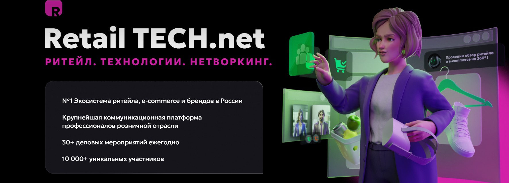 «Давайте создавать будущее вместе!», - призывает организатор события - компания Retail TECH Net (Ритейл. Технологии. Нетворкинг), являющаяся крупнейшей платформой для отраслевого общения ритейлеров и FMCG компаний в России. Девиз команды организаторов и главная идея трансформации современного розничного бизнеса остаются неизменным: «Be digital. Stay human!»