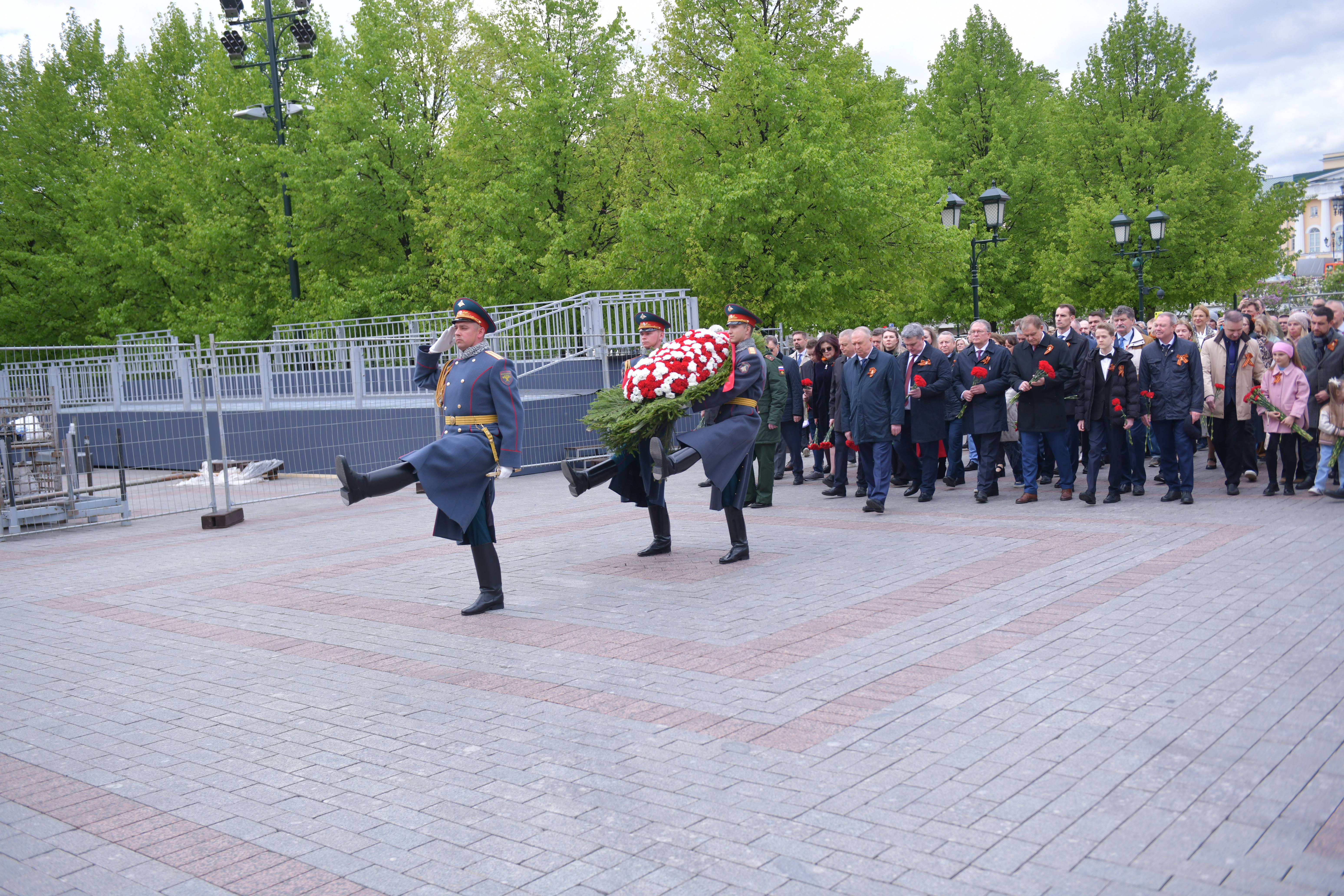 В преддверии 9 мая представители руководства и трудового коллектива Центра международной торговли Москвы и АО «Экспоцентр», в составе делегации Торгово-промышленной палаты России, следуя сложившейся традиции, приняли участие в торжественной церемонии возложения цветов к мемориалу Неизвестного Солдата у Кремлевской стены в Александровском саду. От ЦМТ в церемонии приняли участие: генеральный директор Владимир Страшко, первый заместитель генерального директора Сергей Давыдов, заместитель генерального директора по финансам и коммерции Вадим Субботин, руководители департаментов и сотрудники.
