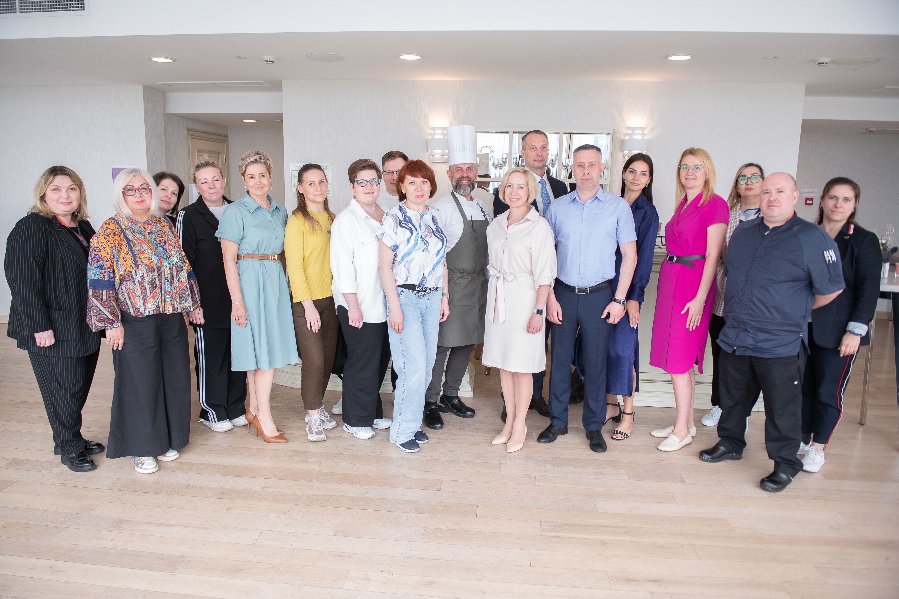 Руководитель Ресторанного комплекса отметил, что в комплексе есть два ресторана, которые ежедневно обслуживают до 800 гостей отеля на завтраках. Также функционируют три корпоративные столовые, посещаемость которых достигает 2000 человек в день. В комплексе работают мини-бары, room-service и кофейни. По итогам 2024 года ресторанный комплекс принял почти 1,5 миллиона человек. Это гости, которые приходили на завтрак, обед или ужин, а также те, кто покупал кофе или выпечку в точках ресторанного комплекса. Он отметил, что на базе ЦМТ студенты смогут многому научиться.