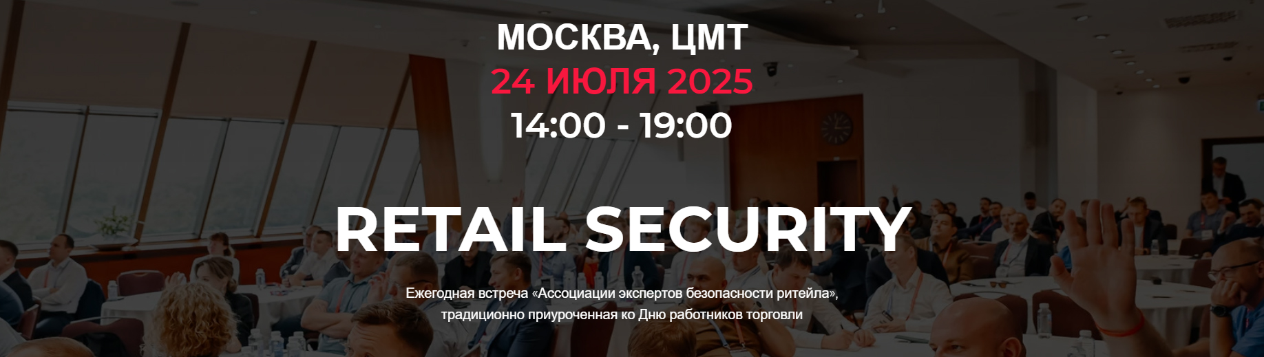 Конференция RETAIL SECURITY 2025 будет проходить 24 июля 2025 года в очном формате, в ЦМТ Москвы в Бизнес-пространстве «Ладога» на Краснопресненской набережной, 12, подъезд 7, этаж 4.