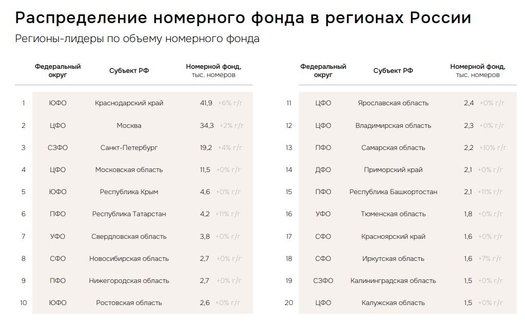 Третью позицию занимает Санкт-Петербург (19,2 тыс. номеров (+4% г/г). Далее следуют Московская область и Республика Крым.