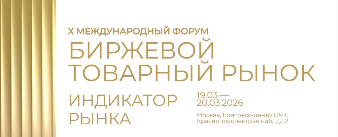 X Международный форум «Биржевой товарный рынок» проходит 19–20 марта 2026 года в ЦМТ Москвы. В программе: